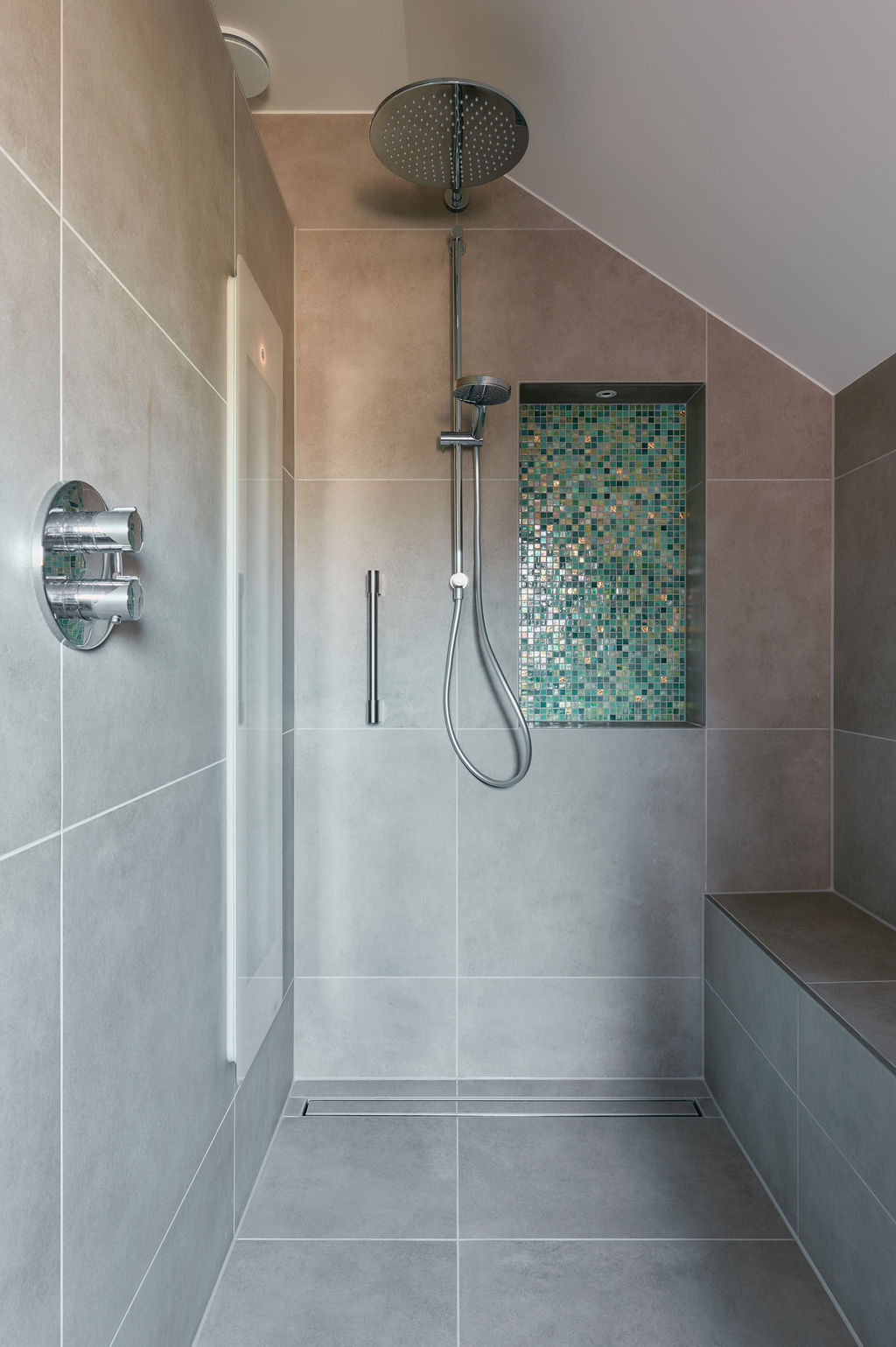 Werkzaamheden: Badkamer en toilet volledig vernieuwd, inclusief tegelwerk, nieuw sanitair én een ingebouwde infrarood sunshower